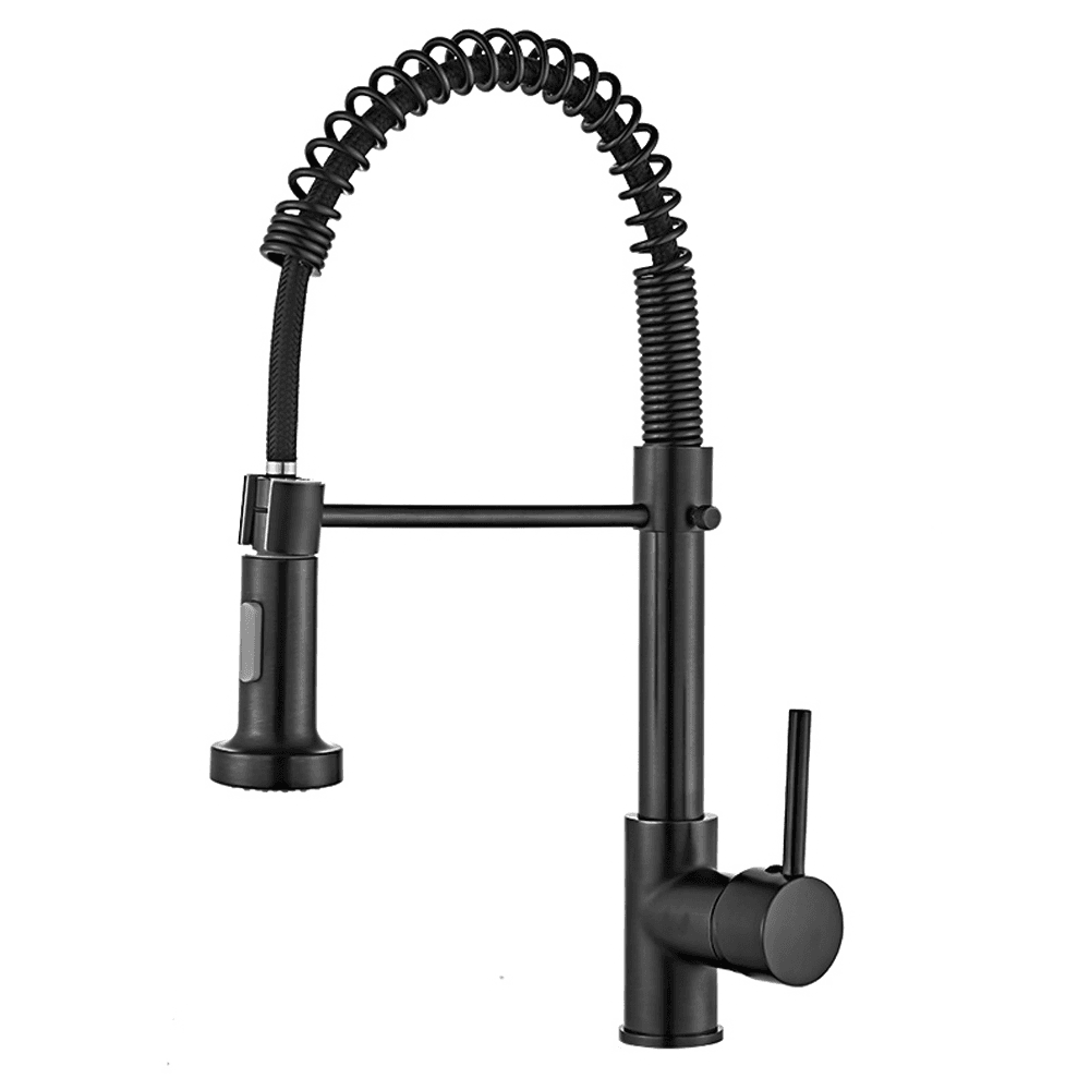 Modern Single-Handle Black Kitchen Faucet with Pull Out Feature Hot & Cold Water Water Saving Single-Hole Installation